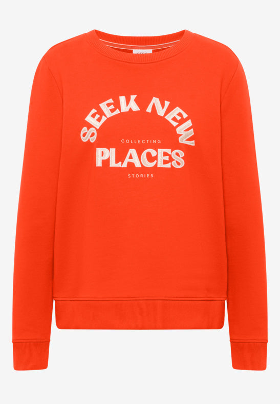 This sweatshirt by CECIL for women inspires with casual style and fine embroidery on the front. Pure cotton ensures a comfortable feel, while round neckline and long sleeves round off the sporty look. An uncomplicated favourite piece for relaxing everyday moments.