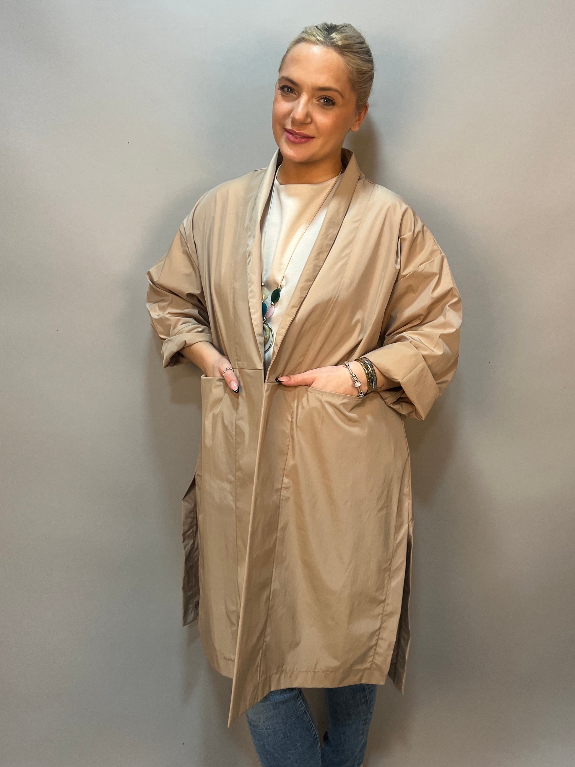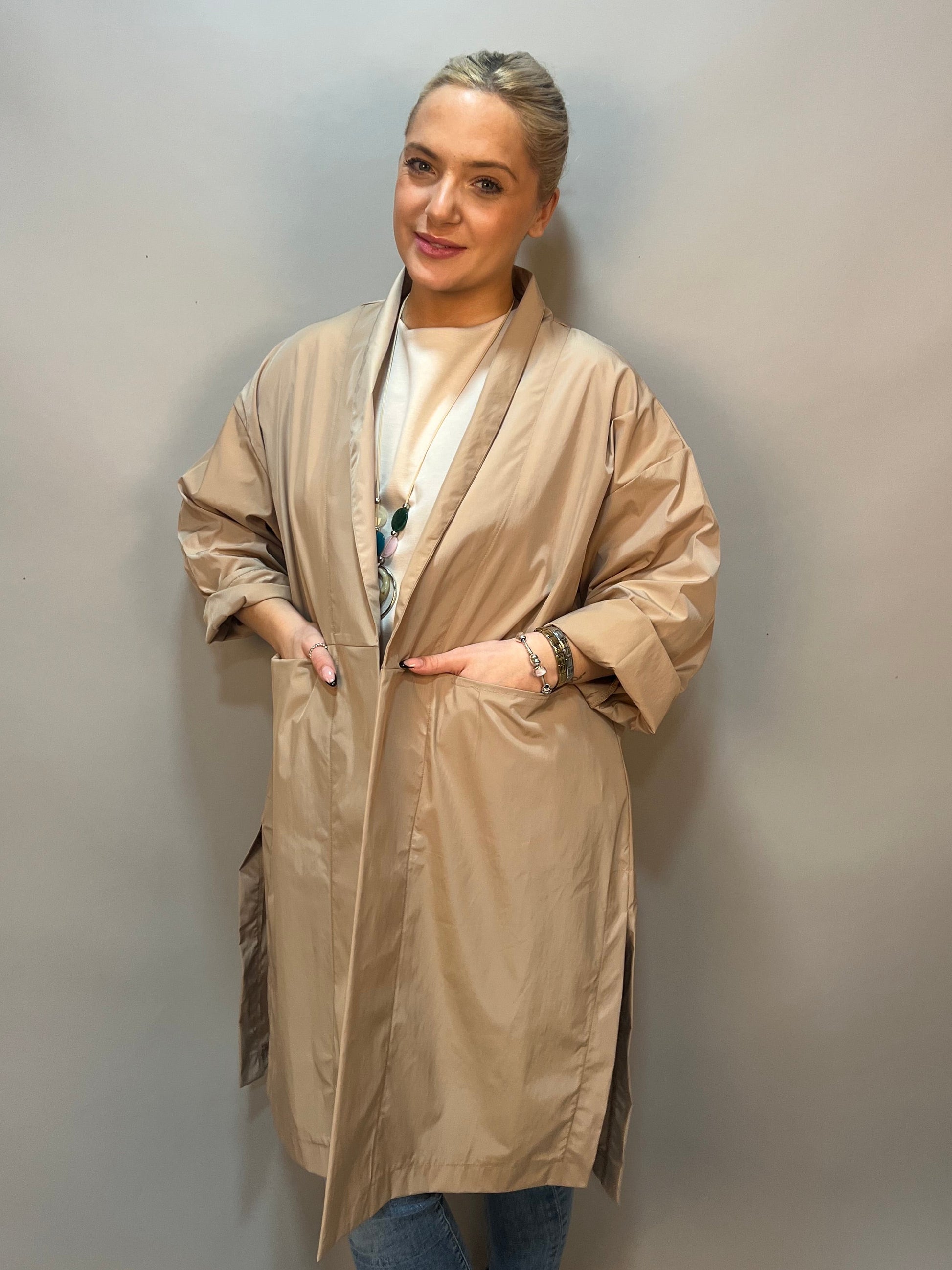 Long beige light jacket - great for spring and summer months as a light layer