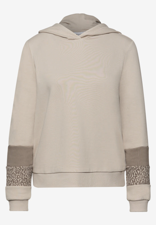 The Sweat Hoodie by Street One for women brings sporty casual charm with hood, long sleeves and tonal inserts on the sleeve with Leo pattern - waistband and ribbed cuffs complete the look. The soft cotton blend ensures comfort and casualness at the same time.